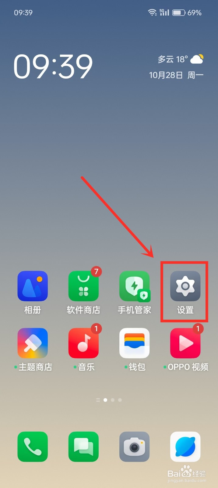 1/3分步阅读第一步:进入手机桌面,点击【设置】。