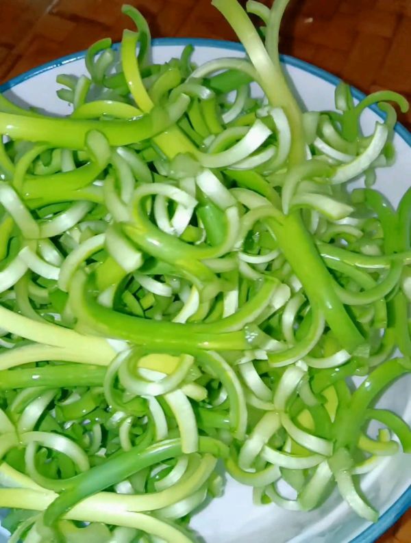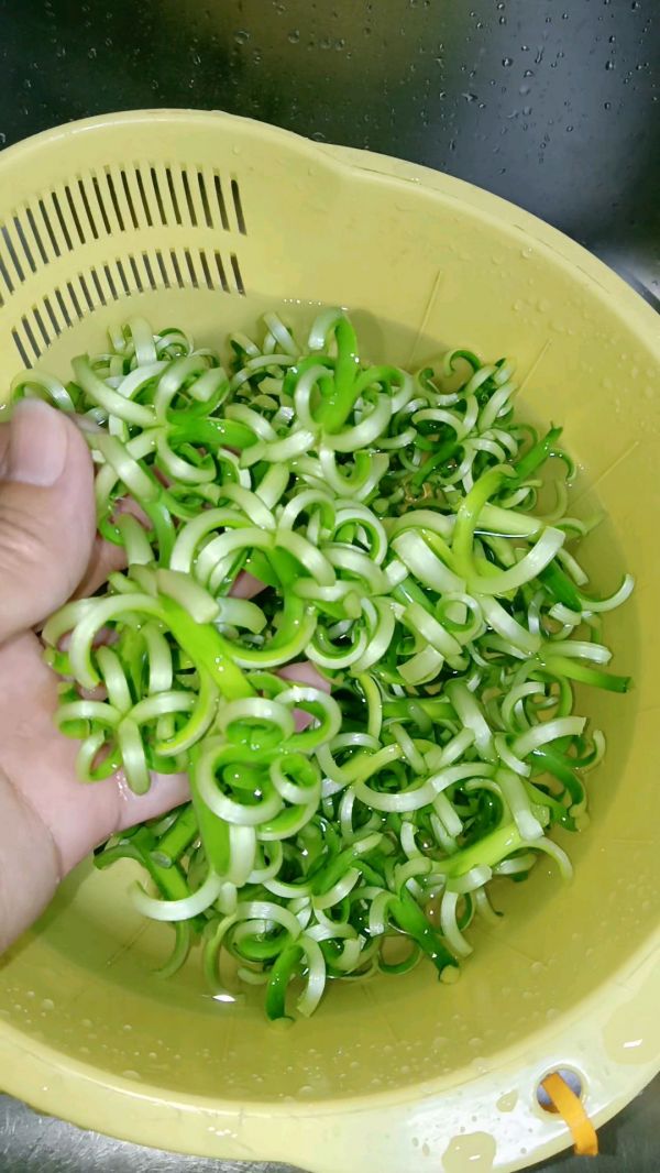 [图]3/5泡好马上捞出分开(泡的越久八爪越厉害),不然八爪蒜苔会打结很难解开