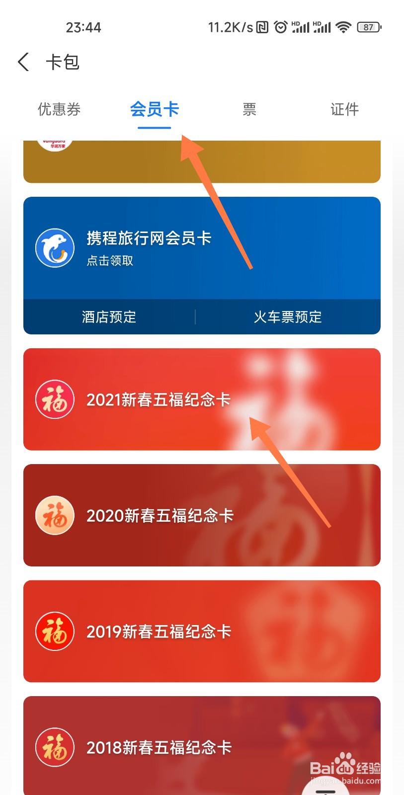 [图]2/3进入页面后在会员卡页找到【五福纪念卡】。