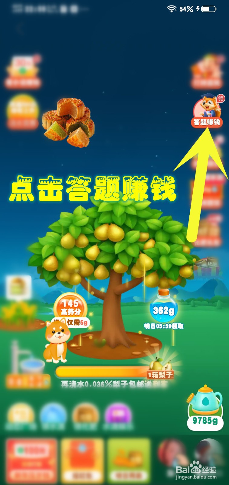 点击卡通树进入果园,点击答题赚钱,点击右侧气泡里的金猪领取奖励,点击领取90答题币并且开局答题,答题正确越多隔天领取金猪答题币越多。- 品牌型号:vivoZ3V1813BT