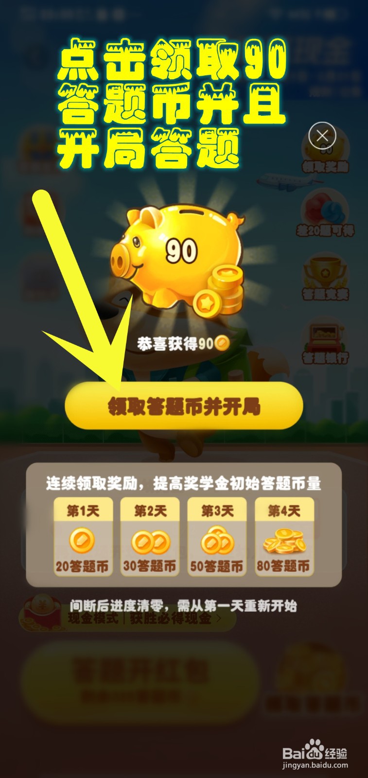 [图]6/6进入答题页面自动弹出金猪,去答题领取80答题币,答题正确越多隔天领取金猪答题币越多。