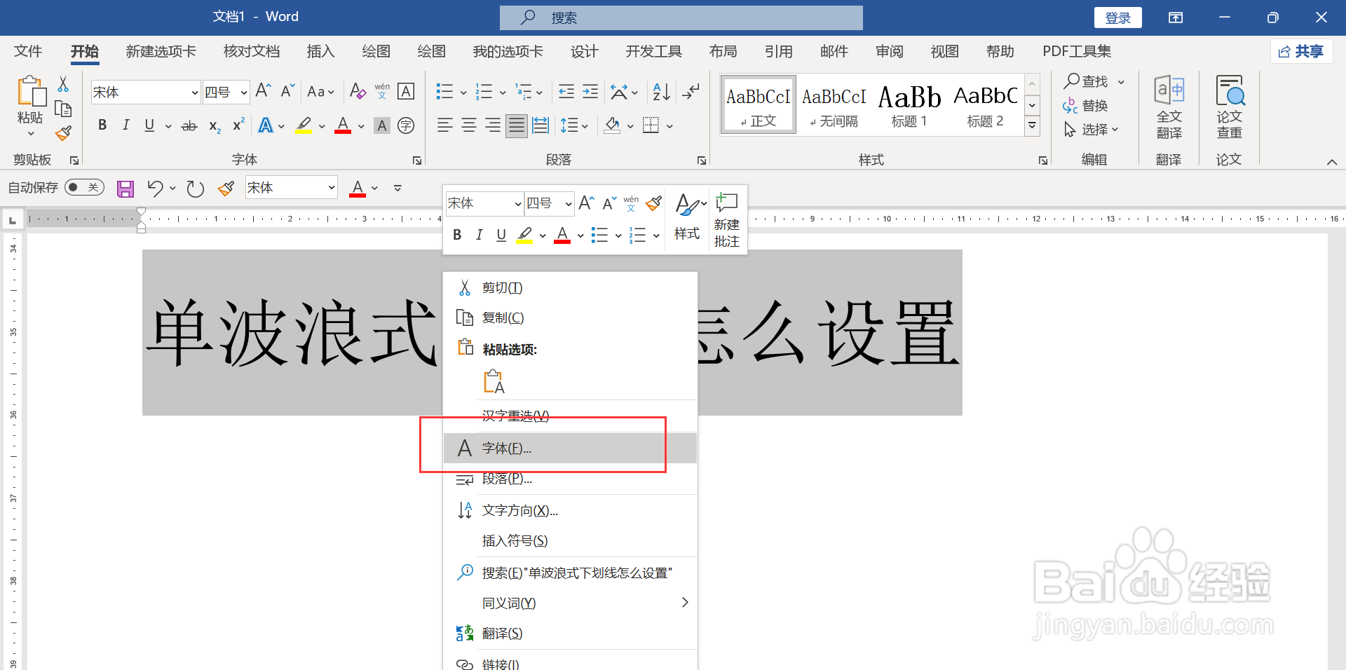 [图]2/3打开字体设置窗口,点击下划线线型,选择单波浪线下划线。