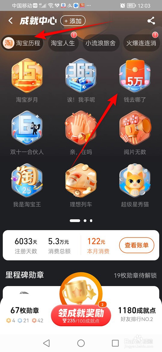 [图]3/4点选“淘宝历程”,点击“钱去哪儿了”。