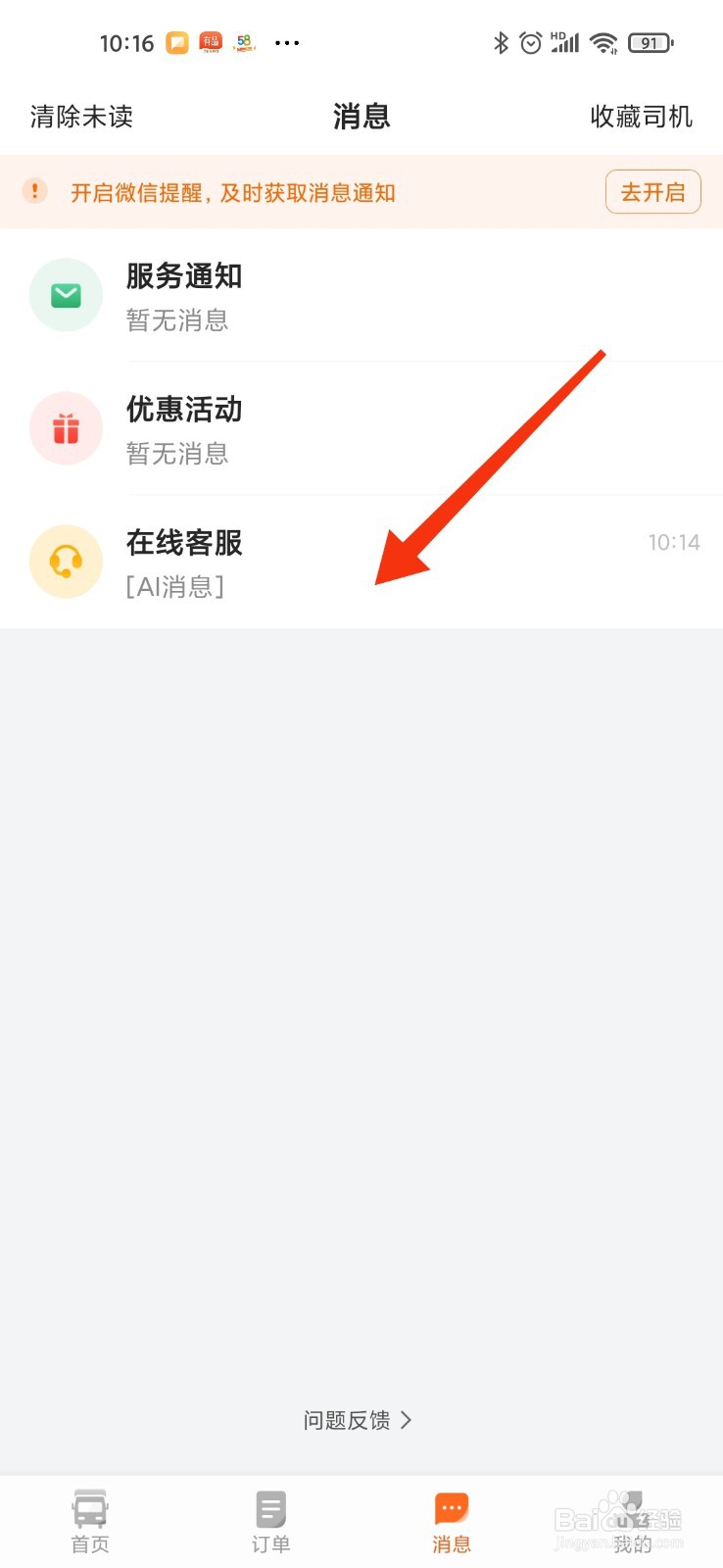 [图]2/3点击消息,如下图,看到在线客服