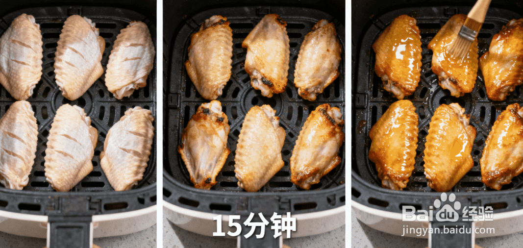 1.刷油提脆:在翻面后的鸡翅表面刷一层薄油(10ml 油分 2 次用,每次刷 5ml),刷油后外皮会更酥脆,避免烤制后期变干;