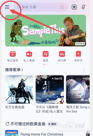 1/5分步阅读网易云音乐点击左上角三横符号。