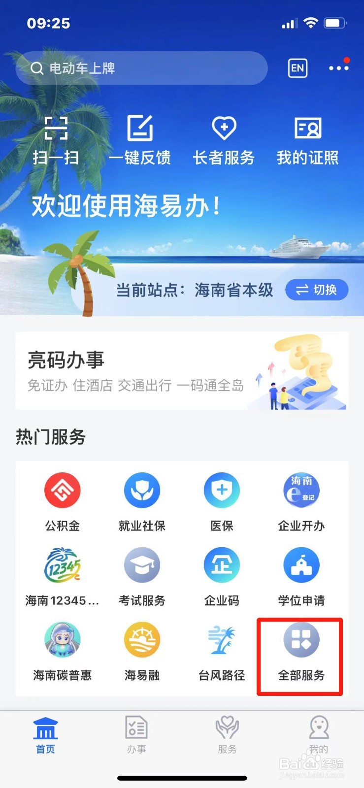 1/3分步阅读第一步:打开【海易办】APP,点击【全部服务】。