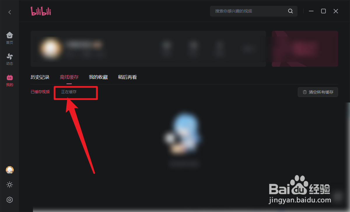 [图]打开哔哩哔哩软件,我的主页上方点击查看【离线缓存】。