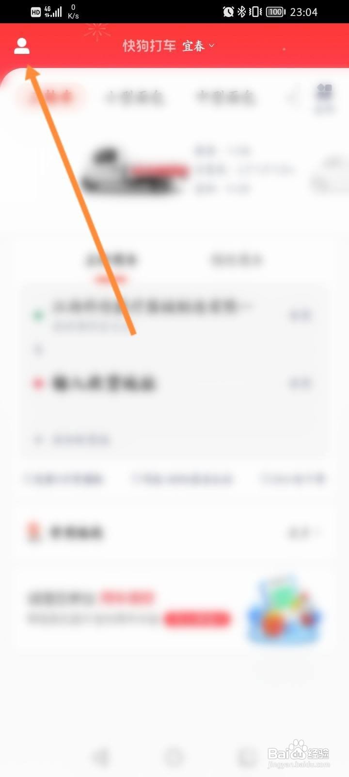 第一步,打开快狗打车软件首页,点击头像图标。