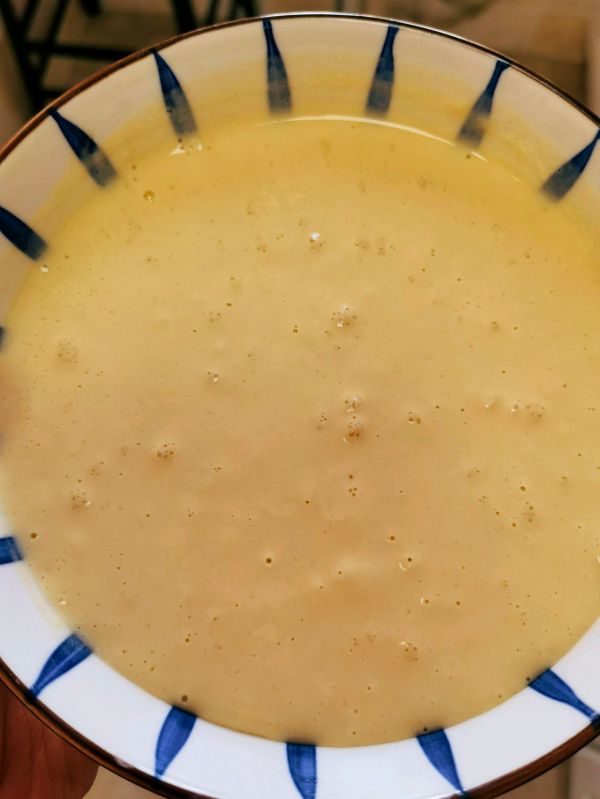 [图]3/7各种材料搅拌在一起,就像我们平时去买煎饼,那个面糊糊的稠度就可以。
