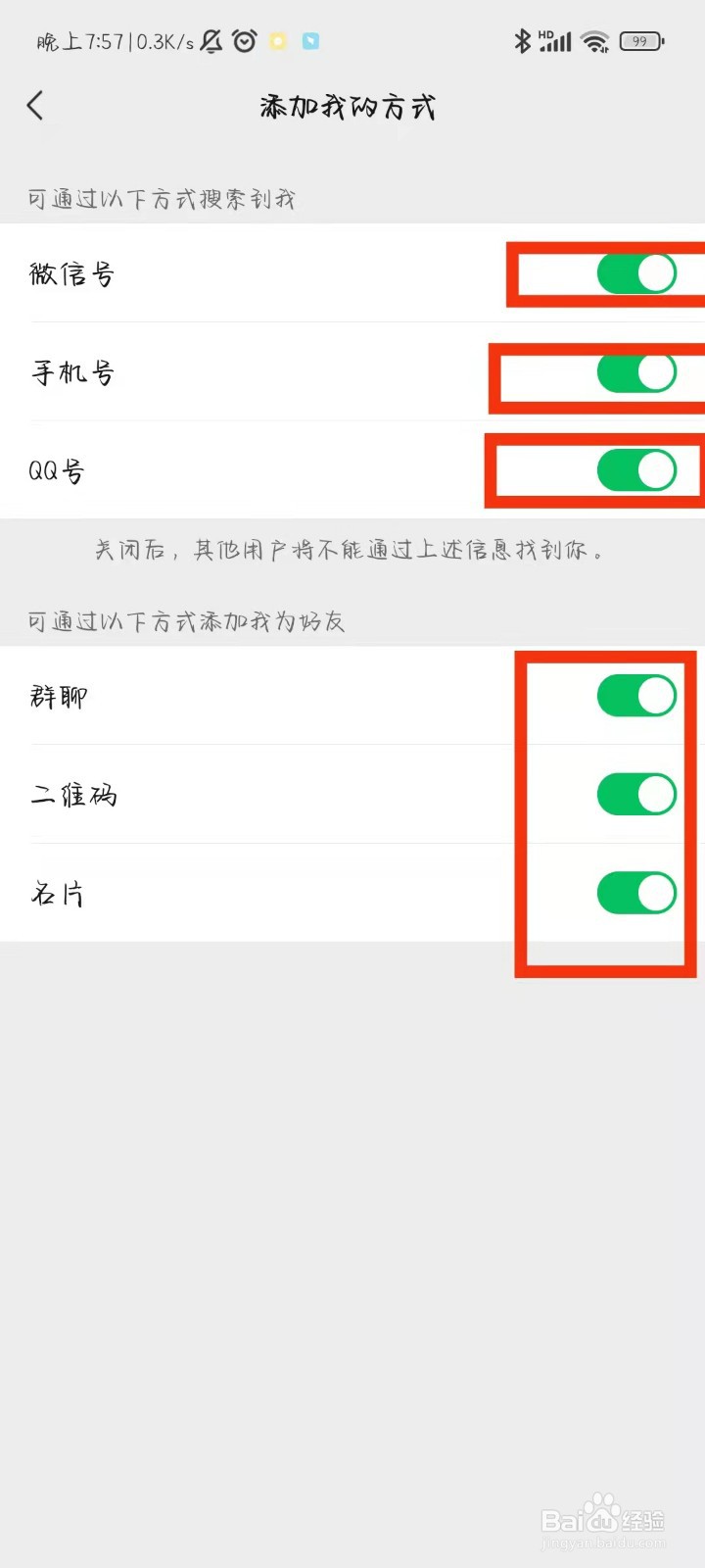 选择自己需要的添加方式并打开对应的右侧按钮就好啦。