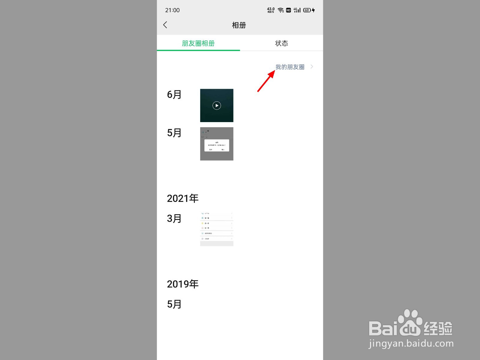 [图]2/5在朋友圈界面言册,点击我的朋友圈。