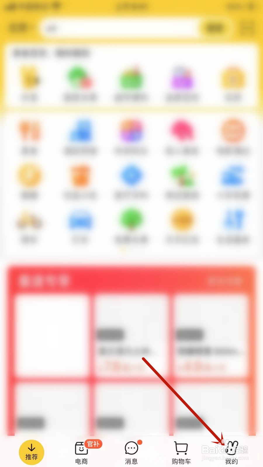 打开美团app,进入软件首页,点击页面右下角【我的】;