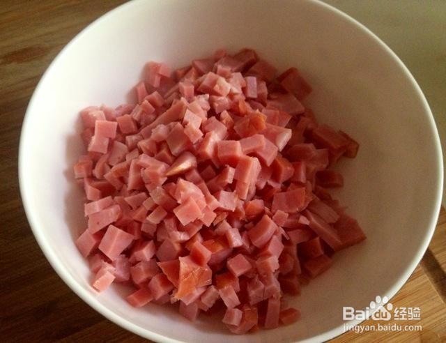 [图]2/4火腿先切成薄片,然后改刀切成小细丁。