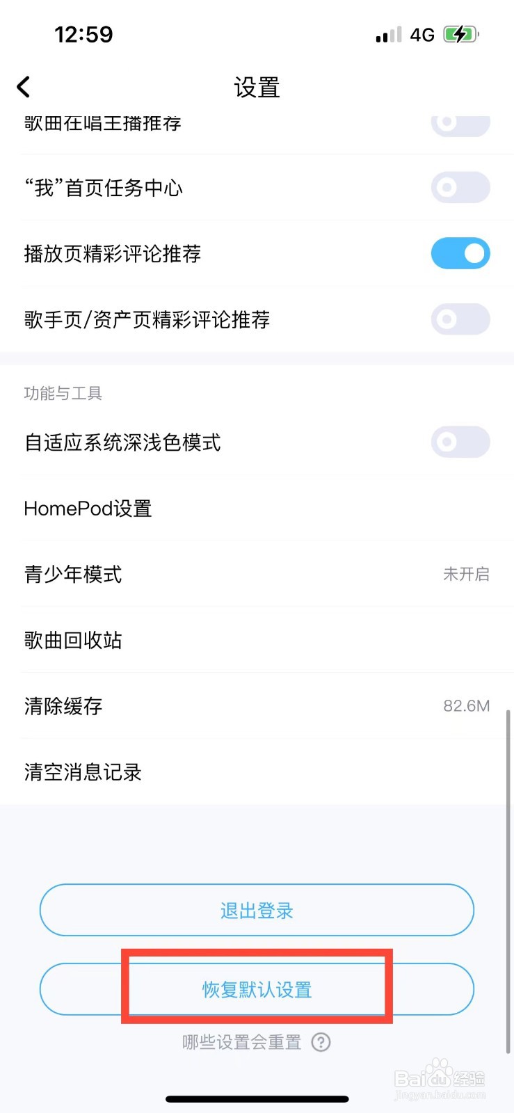 酷狗音乐恢复到默认设置在个人中心界面选项设置选项,选择恢复默认设置选项,点击恢复默认选项即可,具体操作方法如下:- 品牌型号:iphone13