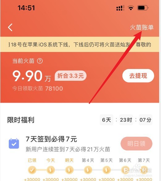 [图]2/3进入详情页,右上角就可以点击【火苗账单】