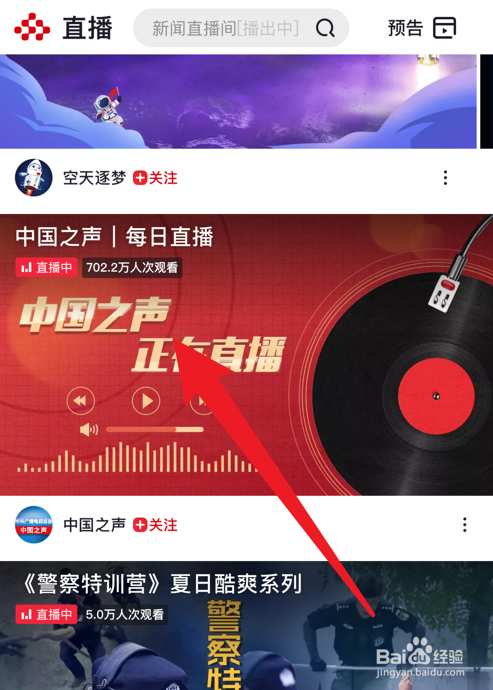 [图]3/4在直播页面,找到“中国之声”直播封面,点击它。
