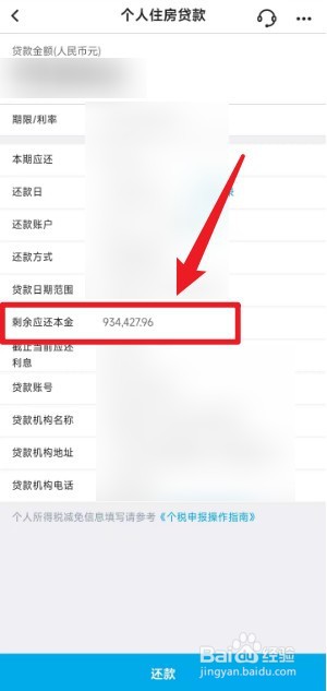 [图]4/4进入个人住房贷款页面,在剩余应还本金一栏即可查看到剩余贷款。