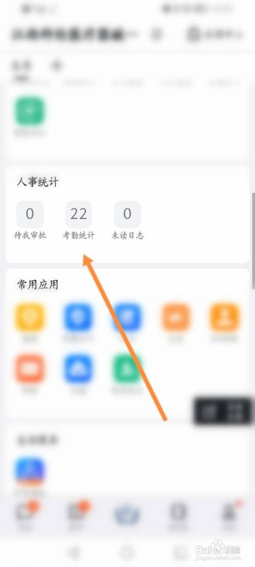 第二步. 点击上面的考勤统计选项。
