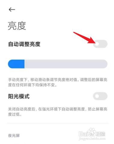 [图]3/3关闭自动调整亮度:将自动调整亮度的功能关闭即可。