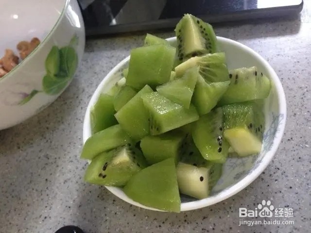 [图]2/4猕猴桃削皮后冲洗一下,切成小块。