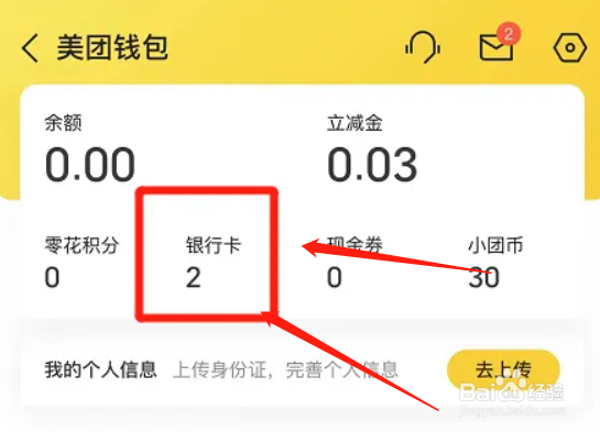 进入到美团钱包界面,翻转到“银行卡”页面。