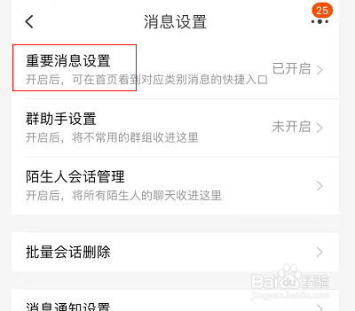 [图]3/4在消息设置界面,点击重要消息设置进入。