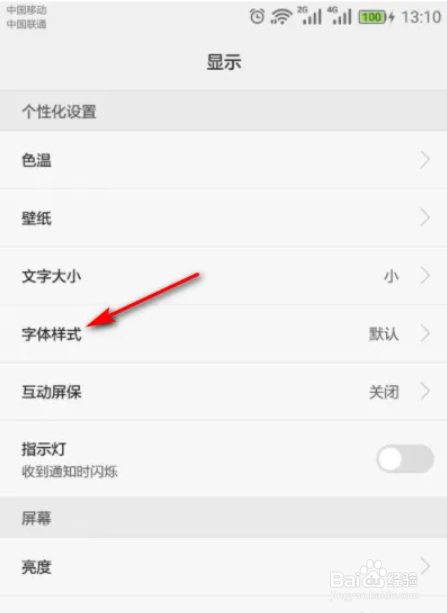 [图]2/32,进入新界面,找到“字体样式”一栏,一般都是默认手机自带的字体。