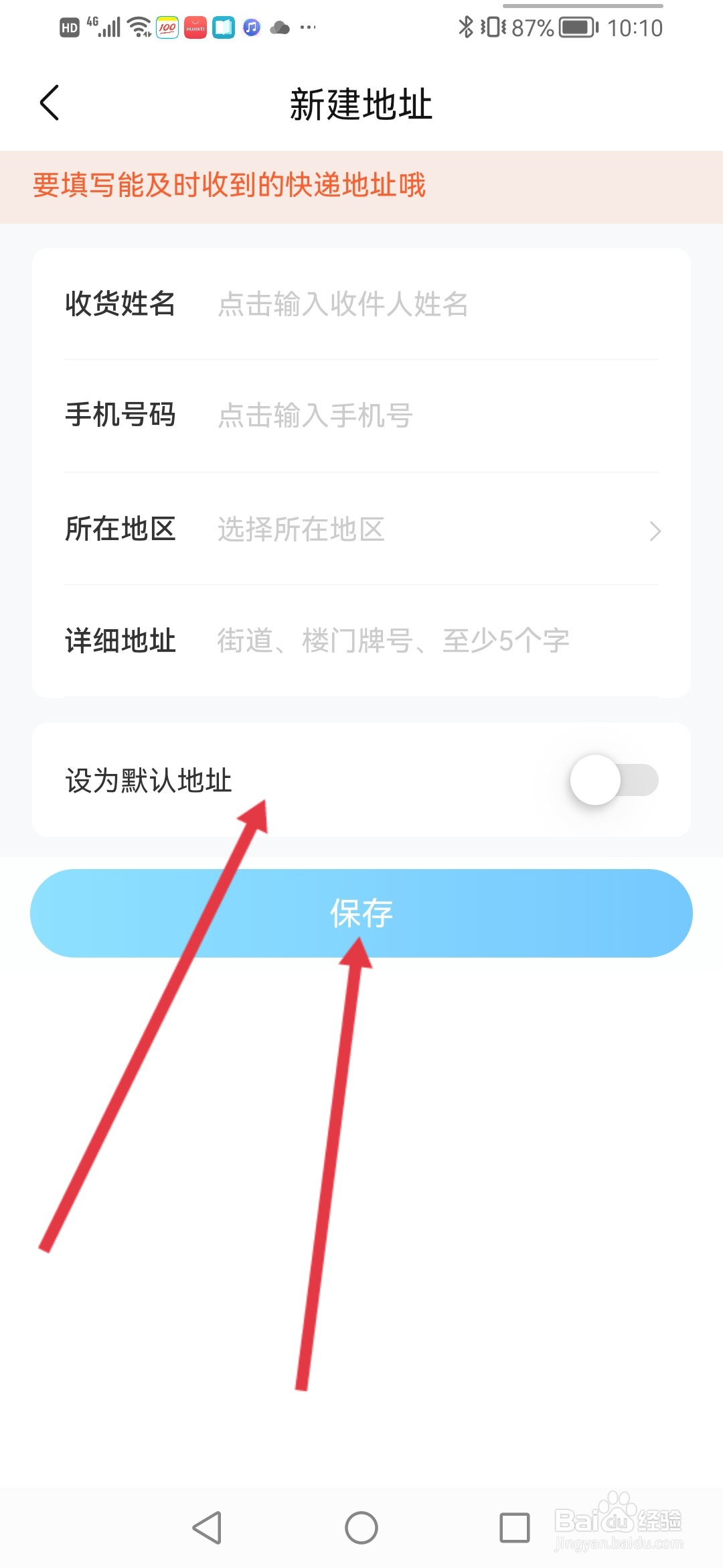 [图]6/6进入新建地址,然后按指引把地址填上,再点击【保存】即可。