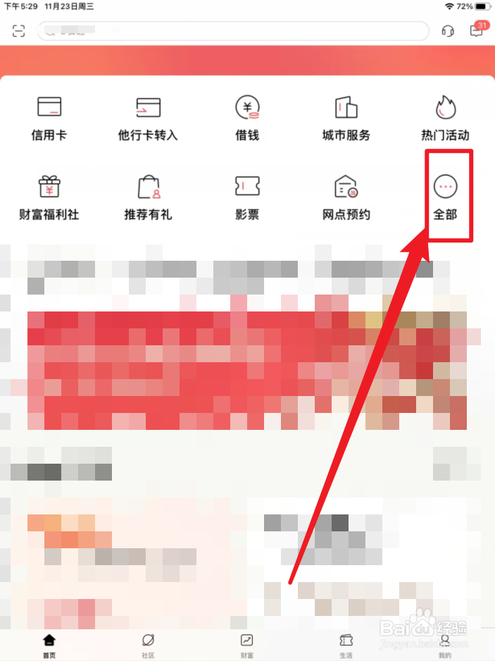 [图]打开招商银行软件,如图所示首页上面点击“全部”。
