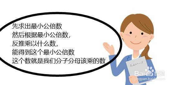 [图]4/5求出最小公倍数后,逆向想法,分母要乘以什么数才等于这个最小公倍数,而这个数就是我们通分,分子和分母要相乘的数