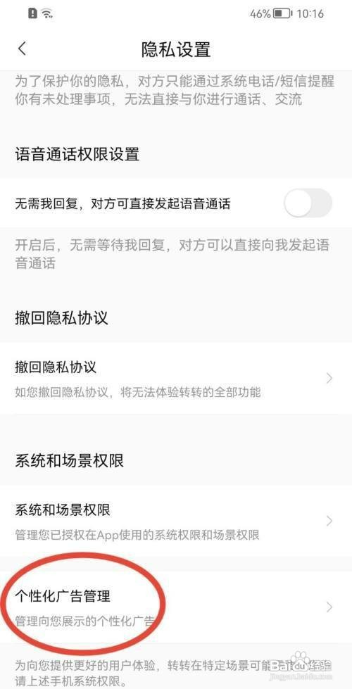 [图]3/4第三步、在隐私设置页面,点击【个性化广告管理】按钮。