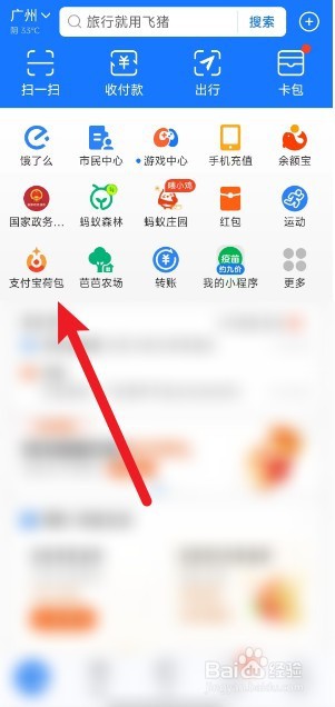 1/4分步阅读进入支付宝app首页,点击【支付宝小荷包】