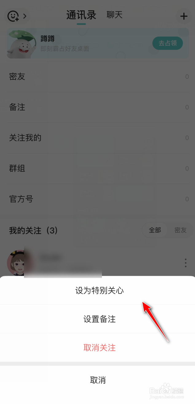 [图]4/4在弹出的选项中,选择设为特别关心即可。