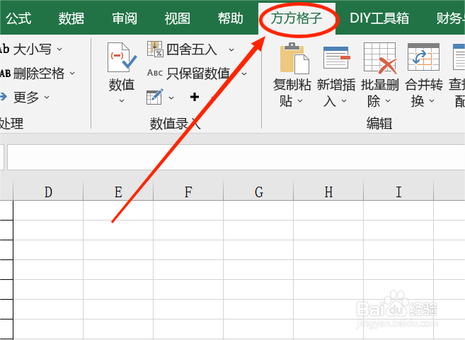 [图]2/6在打开的文件中,点击【方方格子】选项卡。