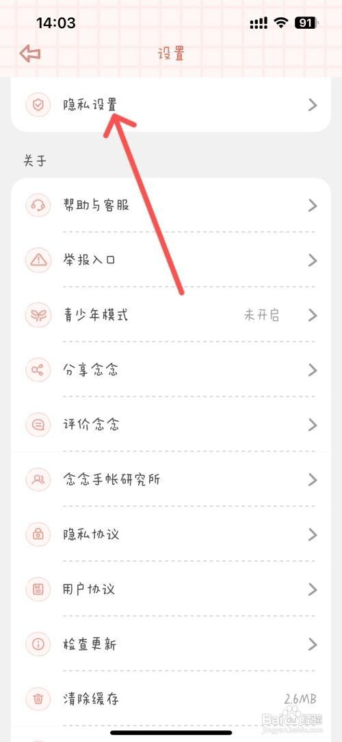 [图]3/4在设置列表中,点击隐私设置选项