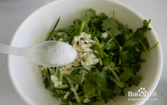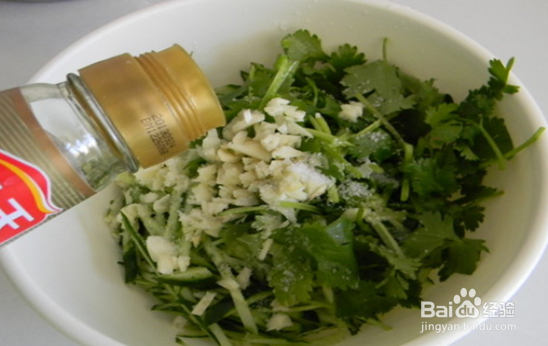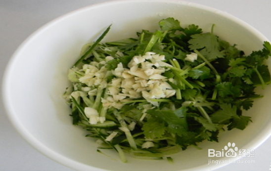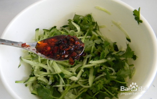[图]4/4将黄瓜、碎蒜、香菜、盐、酱油、辣椒油(我这个是麻辣的辣椒油)、味精放入拌盆中拌匀装盘即可