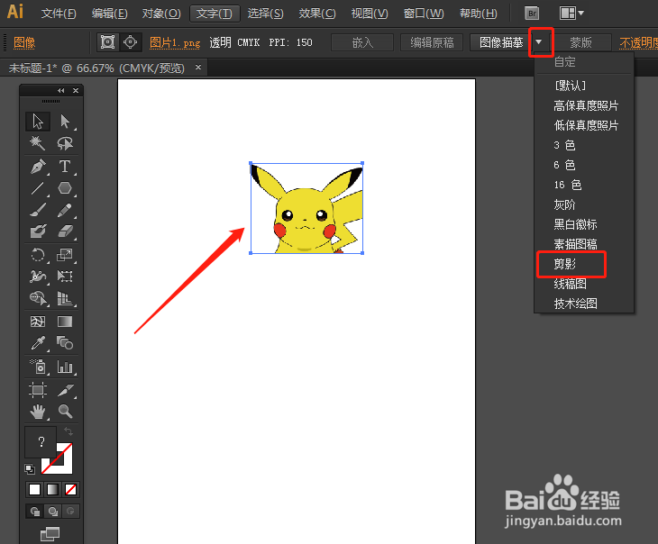 [图]3/4图像描摹的下拉菜单中,单击选择剪影。