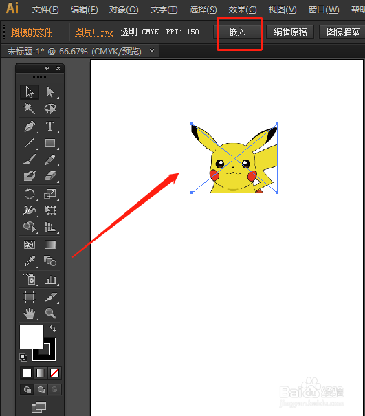 打开AI软件,Ctrl+N新建画布,选中图片,单击嵌入。
