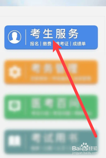 [图]3/5接着我们在页面中点击考生服务选项。如下图所示