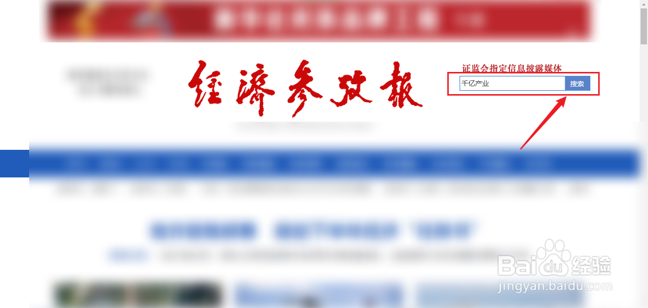 [图]2/4来到经济参考报首页,输入关键词千万产业,点击搜索选项。