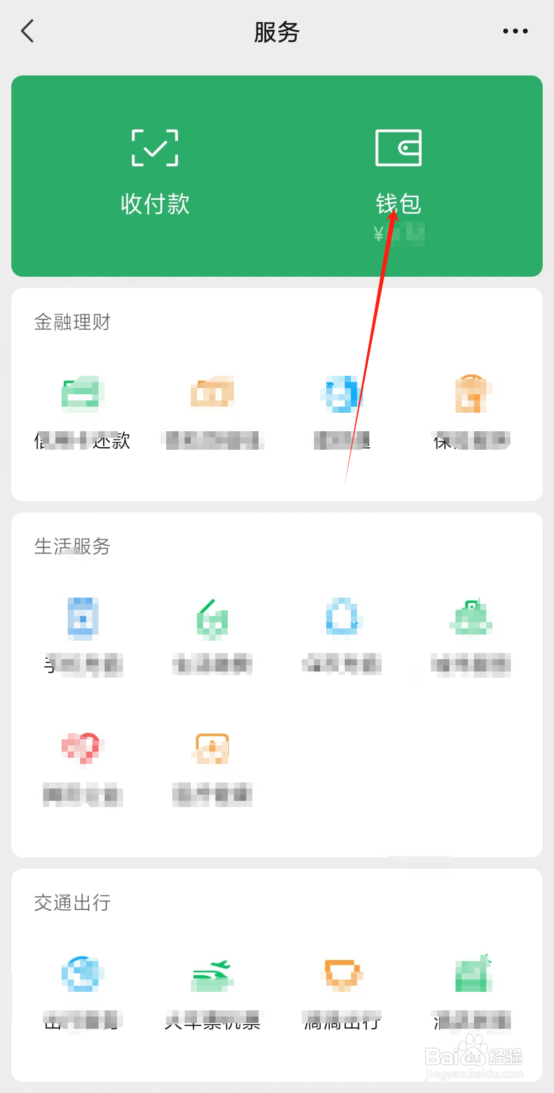 在服务界面中,点击【钱包】,进入钱包管理页面。
