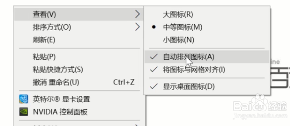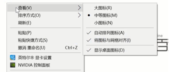 右键点击桌面,将鼠标移动到“查看”。如下图所示:如下图所示: