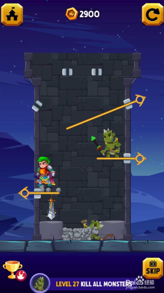1/7分步阅读这一关的任务是消灭怪物兵,勇士站在熔岩右侧,宝剑在左侧底部,情况如图。