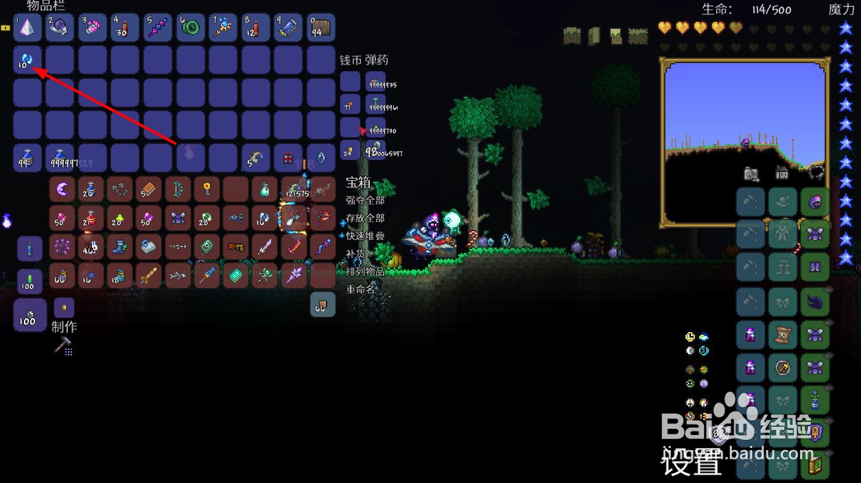 1/3分步阅读进入泰拉瑞亚游戏,鼠标右键点击宝箱,查看内部道具。