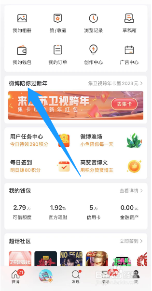 进入微博的跨年集卡活动的方法- 品牌型号:Redmik50