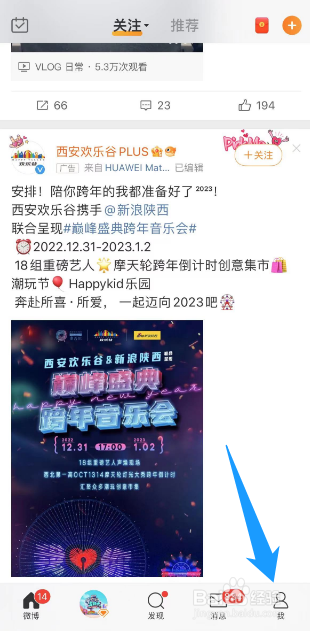 1/4分步阅读打开微博,在首页点击进入“我的”