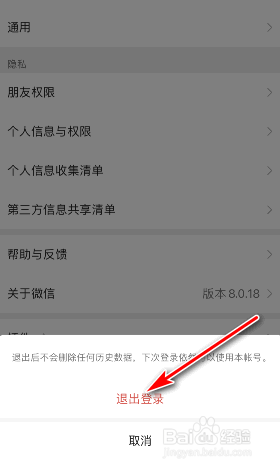 [图]3/3最后,继续点击退出登录。这样便可以退出微信的登录。