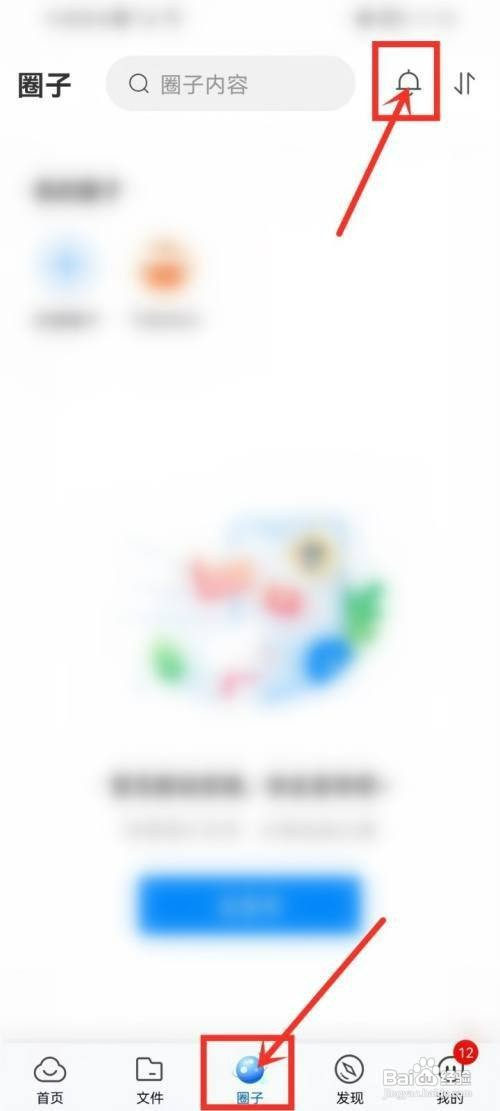 1/3分步阅读打开手机app,进入圈子界面,点击右上角“小铃铛”图标。