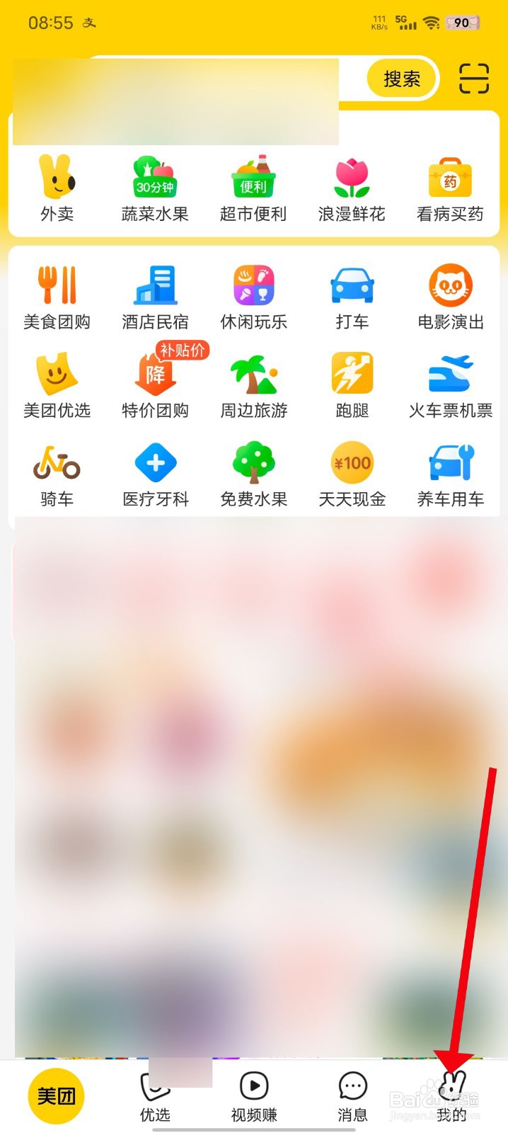 1/4分步阅读首先打开美团软件APP,进入首页后,点击下方‘我的’进入